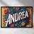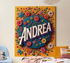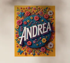 Andrea "la coraggiosa", un'opera d'arte che onora il suo nome con una varietà di fiori.