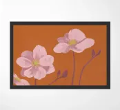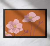 Illustration of Anemones, lovely pink flowers against a stone-red background.