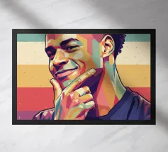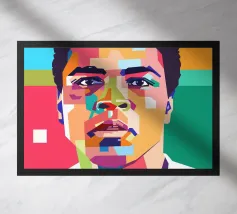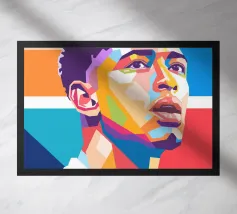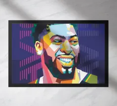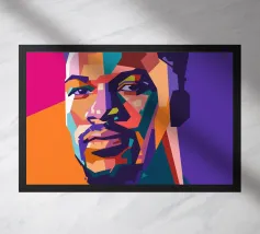 Il WPAP (Wedha's Pop Art Portrait) di Anthony Davis è una rappresentazione sorprendente che cattura l'essenza della star dell'NBA attraverso una lente vibrante e geometrica. Questo stile artistico utilizza forme audaci e intersecanti e una tavolozza di colori vivaci per raffigurare i tratti distintivi di Davis, come la fronte prominente e lo sguardo intenso, che simboleggiano la sua presenza dinamica sul campo da basket.
