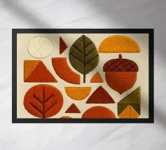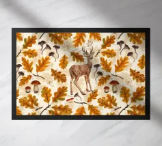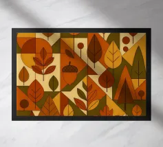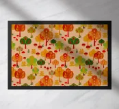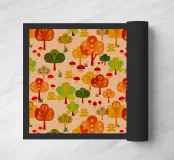 Paesaggio con alberi fantastici, ghiande e funghi dai colori autunnali