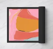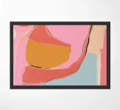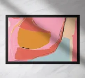 Quest'opera d'arte astratta combina colori pastello tenui come il rosa, l'arancione, l'azzurro e il crema per creare una composizione armoniosa e giocosa. Linee sottili e forme geometriche creano una texture strutturata ma vivace, con un tocco di leggerezza. Il quadro appare moderno, naturale e ispirato alla creatività infantile e alla gioia colorata.