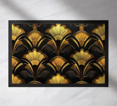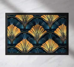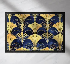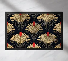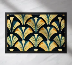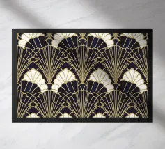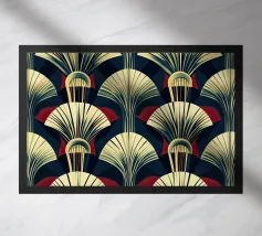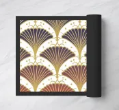 Questo elegante motivo Art Déco di ventagli e forme geometriche impreziosite dall'oro incarna il glamour degli anni '20 e '30 e aggiunge un tocco di lusso nostalgico a qualsiasi ambiente.