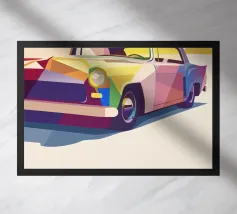 Illustrazione di un'auto d'epoca con uno stile retrò e colori tenui.
