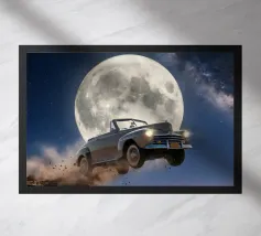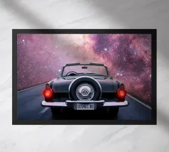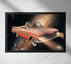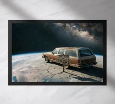 Un'immagine surreale di una piccola auto rossa alla deriva nello spazio profondo sopra la Terra. Simbolo del bisogno di fuggire, di andare ovunque, purché siate voi a guidare. Una metafora visiva per liberarsi, cercare una direzione o semplicemente riprendere il controllo in un mondo che non ascolta più.