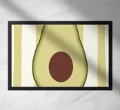 Una dolce e semplice illustrazione di mezzo avocado su uno sfondo a griglia rosa pastello. Perfetta per le pareti di asili nido, stanze di bambini o decorazioni giocose per la cucina. I colori tenui e il design amichevole lo rendono ideale per creare uno spazio allegro e accogliente.