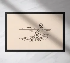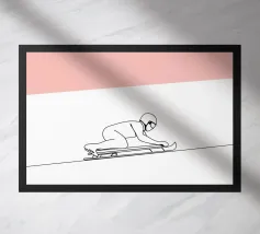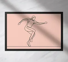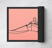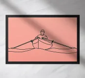 Una line art minimalista di un canoista che pagaia nell'acqua, che cattura la tranquillità, l'avventura e il movimento. Perfetto per gli appassionati di outdoor e per gli arredi ispirati alla natura.