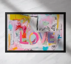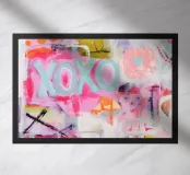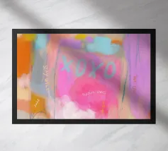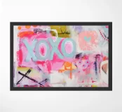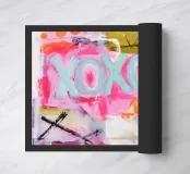 "XOXO" - un'allegra illustrazione artistica dai colori vivaci che celebra l'amore e gli abbracci! Il dipinto acrilico astratto combina motivi vivaci in rosa, azzurro e arancione, con pennellate dinamiche e pois che creano un movimento giocoso. Perfetto per una stanza moderna ed estiva!