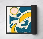 Un vivace disegno di banane in un moderno stile pop art! Questo disegno colorato presenta banane gialle e vivaci e forme stilizzate in blu e crema che emanano energia e freschezza. Perfetto come murale, su tazze o come accessorio di stile per la cucina, il soggiorno o l'ufficio. Per gli amanti della frutta, per gli appassionati di design tropicale o come decorazione moderna, questo motivo porta il buon umore e il colore nella vita di tutti i giorni. Un regalo ideale per gli amanti dell'arte e del design che cercano prodotti unici e allegri.