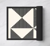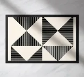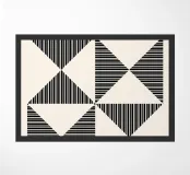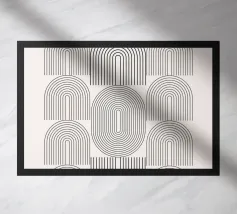 Questo poster d'arte astratta, che si rifà all'epoca del Bauhaus (1919-1933), presenta un avvincente disegno geometrico. Quattro grandi forme sono composte da triangoli intricati e allineati, utilizzando motivi verticali e orizzontali in nero su uno sfondo chiaro. Il gioco di linee crea una struttura visiva e una forma che incarna i principi grafici del Bauhaus. Prodotto come arte digitale di alta qualità a 7000x5000 pixel e 300 dpi, questo poster garantisce dettagli nitidi e linee nette per un'opera d'arte di qualità.