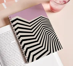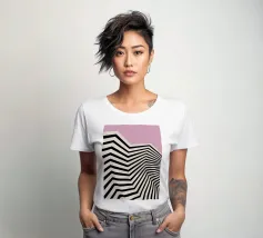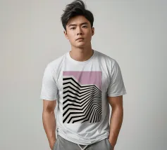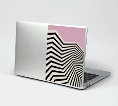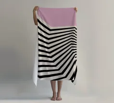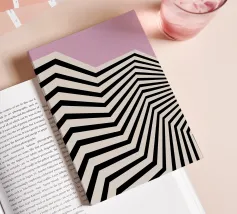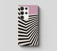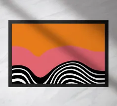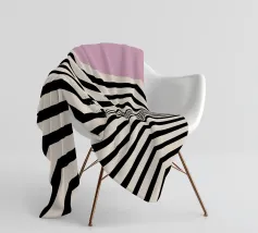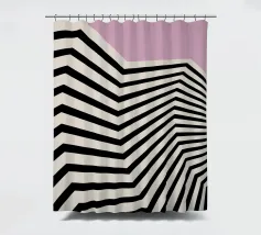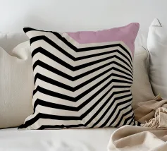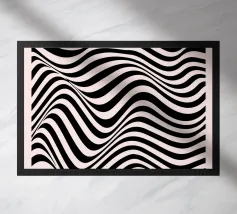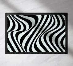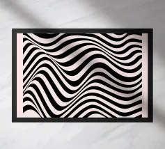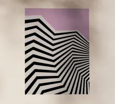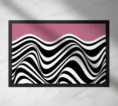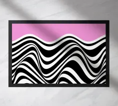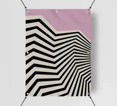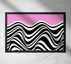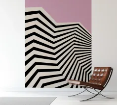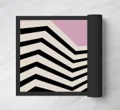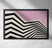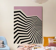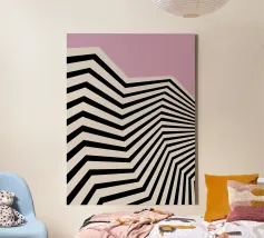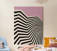 Un audace gioco di texture e colori: questo moderno design ispirato al Bauhaus combina forti linee nere a zig zag con una morbida superficie rosa. La composizione ad alto contrasto crea profondità, movimento e tensione visiva, ideale per gli amanti degli interni che apprezzano le affermazioni grafiche audaci.