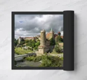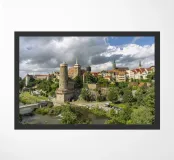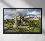 Castello di Ortenburg, Antica arte dell'acqua, Chiesa di San Michele, Cattedrale di San Pietro, la torre dell'acqua, il Castello di Ortenburg e il fiume Sprea a Bautzen, Alta Lusazia, Sassonia, Germania | Antica arte dell'acqua, Chiesa di San Michele, Cattedrale di Bautzen, la torre dell'acqua, il Castello di Ortenburg e il fiume Sprea a Bautzen, Lusazia, Sassonia, Germania