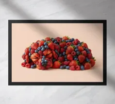 Donna che dipinge di nero i lamponi per farli sembrare more perché ha sbagliato l'ordine del brunch. Collage vintage divertente e surreale di MsGonzalez ispirato alla colazione