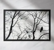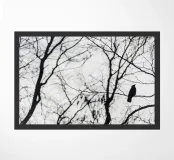 Uccello su un albero. Seduto su un ramo. Immagine in bianco e nero nei Paesi Bassi.