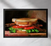 Noah Verrier, uno dei 40 migliori pittori americani di New American Paintings, propone deliziose nature morte di classici comfort e fast food americani. Panini al formaggio grigliato, PB&J o Big Mac prendono vita e fanno venire l'acquolina in bocca. La tecnica magistrale dell'artista di creare contrasti, catturare la luce o far brillare la superficie di una goccia di formaggio è a dir poco magistrale. Noah è un ex professore d'arte e vive con la sua famiglia a Tallahassee. Le sue opere sono state esposte in tutto il mondo, tra cui Giappone, Australia, Germania, India, Canada, Inghilterra e Francia.
