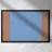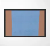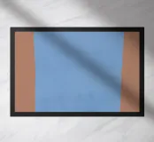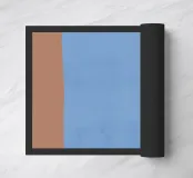 Un rettangolo azzurro di forma irregolare è centrato su uno sfondo color pesca a contrasto. Sulla superficie blu sono visibili sottili variazioni e texture che fanno pensare a un muro o a un pezzo di materiale dipinto.
