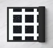 Parte superiore in poliestere di facile manutenzione e parte inferiore in gomma nera antiscivolo.