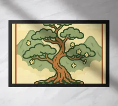Questa illustrazione dettagliata di un bonsai rassicurante crea un'atmosfera pacifica e rilassante in qualsiasi stanza.
