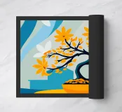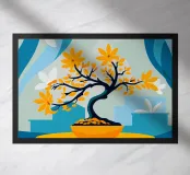 Questa illustrazione dettagliata di un bonsai rassicurante crea un'atmosfera pacifica e rilassante in qualsiasi stanza.