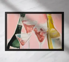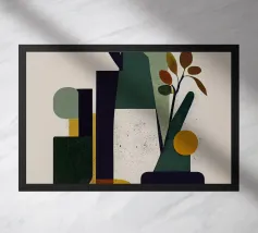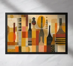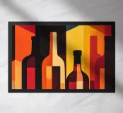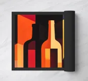 Quest'opera d'arte minimalista presenta un gruppo di bottiglie la cui silhouette è enfatizzata dai toni accesi del giallo, del rosso e dell'arancione. Le aree geometriche di colore e il forte contrasto tra luce e buio creano un effetto dinamico, quasi tridimensionale. Il quadro unisce l'astrazione all'eleganza moderna ed è perfetto per soggiorni contemporanei, bar o cucine, dove crea un accento caldo e artistico. Ideale per chi preferisce forme chiare e colori vivaci nel proprio arredamento.