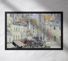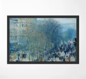 Boulevard des Capucines (1873-1874 circa) di Claude Monet è un dipinto impressionista fondamentale che cattura la vivace energia di Parigi da una prospettiva elevata. Vista da una finestra sopra il famoso boulevard, la scena è animata da figure sfocate, carrozze trainate da cavalli e dalla tenue foschia della luce invernale. Le pennellate sciolte e dinamiche di Monet e la delicata tavolozza dei colori trasmettono il movimento, l'atmosfera e l'immediatezza della vita urbana moderna.