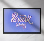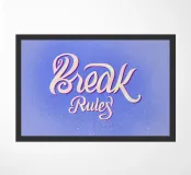 Scrittura Break Rules in eleganti tonalitร  di blu con un effetto ricco e strutturato.