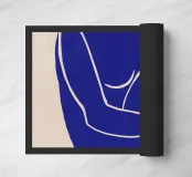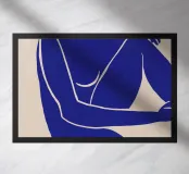 La silhouette blu di una figura umana si staglia su uno sfondo color crema, in una posa contemplativa con un braccio appoggiato sul corpo e l'altro dietro la testa. Lo stile minimalista trasmette emozioni attraverso linee semplici e colori solidi, garantendo un forte impatto visivo.