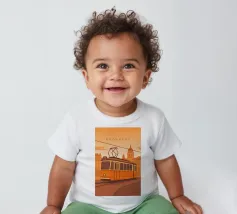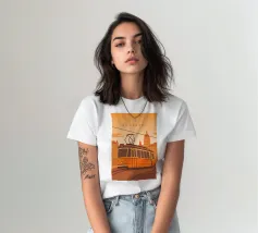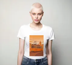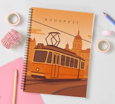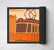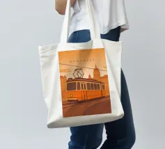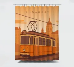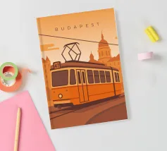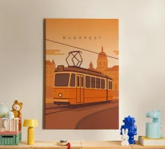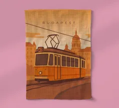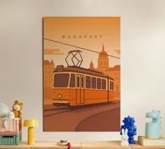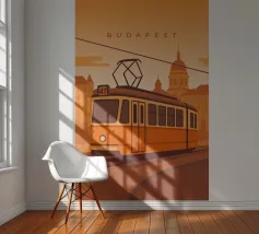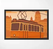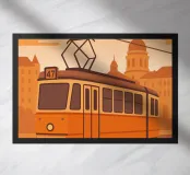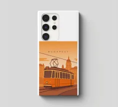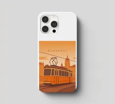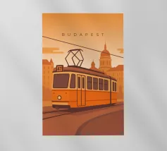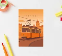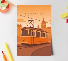 Design minimalista della capitale dell'Ungheria, Budapest. Tipico tram e skyline di questa splendida città dell'Europa orientale.
