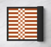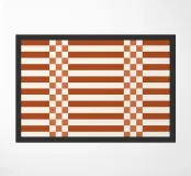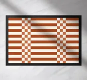 Caratterizzato da un'elegante miscela di quadretti geometrici e linee pulite nei toni dell'arancione bruciato, questo design conferisce un'accogliente raffinatezza e un fascino moderno di metà secolo a qualsiasi stanza o accessorio. Perfetto per gli amanti dell'arredamento eclettico e contemporaneo che apprezzano lo stile senza tempo con un tocco vivace.
