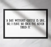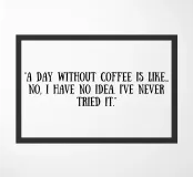 "Un giorno senza caffè è come... no, non ne ho idea. Non ho mai provato". Ottimo per una tazza o una camicia, per un collega o un amico!