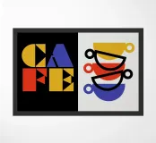 Questo poster combina una tipografia audace con tazze da caffè colorate e minimaliste. Perfetto per gli amanti del caffè e dell'arredamento contemporaneo.