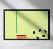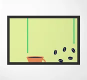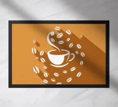 Godetevi l'aroma fragrante e il gusto ricco del caffè. Design con chicchi di caffè e una tazza di caffè da leccarsi i baffi.
