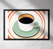 caffè espresso tazza piattino testo modello ad anello bevanda ceramica bevanda calda tazza caffeina bicchieri design circolare colazione-bevanda messaggio di testo routine mattutina citazione contrasto sfondo arancione bordo crema