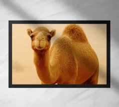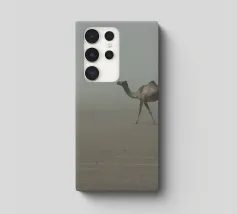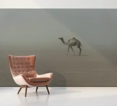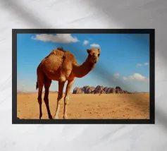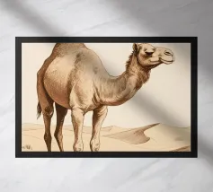 Cammello in piedi nel deserto. Mentre soffia il vento e arriva una tempesta di sabbia. Paesaggio in Etiopia, in Africa.