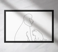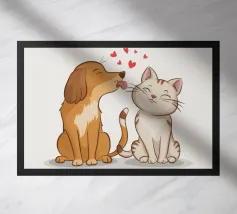 Illustrazione "Cani e gatti": L'adorabile amicizia tra cani e gatti! Questo disegno raffigura cani e gatti che giocano insieme, pieni di affetto e di gioia.