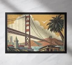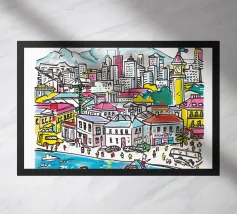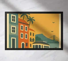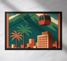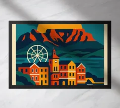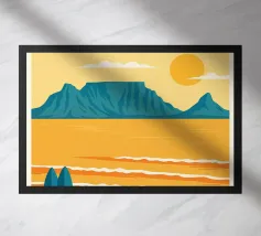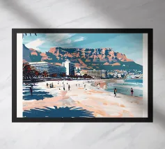 Design da viaggio decorativo e minimalista di Città del Capo per chi ama la capitale del Sudafrica. Idea regalo ideale con la famosa Table Mountain e altri punti di riferimento e attrazioni del paese africano per chi ama viaggiare in Sudafrica.