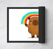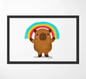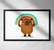 Simpatico disegno di Capibara con arcobaleno. Un'illustrazione molto carina e colorata per rendere più felice la vostra giornata.
