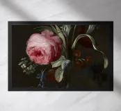 Fiori in vaso di Simon Verelst (1669 circa) mostra una natura morta floreale finemente disposta con dettagli brillanti. Rose, tulipani e altri fiori si dispiegano in un semplice vaso di vetro, magistralmente illuminato nello stile barocco olandese. Quest'opera testimonia la virtuosa tecnica pittorica di Verelst e rappresenta un punto di forza della pittura floreale classica. In mostra al Cleveland Museum of Art.