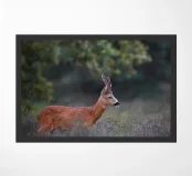 Maschio di capriolo in un campo aperto nei Paesi Bassi.