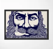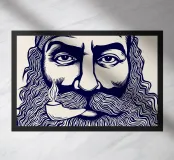 Poster del capitano in stile linoleografico con un marinaio barbuto che fuma la pipa. Un'audace arte da parete nautica in bianco e nero dal fascino vintage, perfetta per gli interni costieri, gli appassionati di mare e l'arredamento unico della casa.