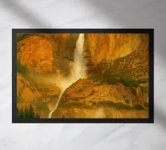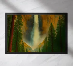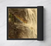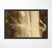 Mist rises at its base, filling the air with freshness, while the powerful roar blends with the gentle sounds of nature, creating a scene both majestic and serene.