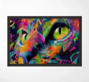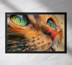 Un ritratto sorprendente e pieno di energia che trasforma un soggetto familiare in una vivida esplosione di colori e motivi. Gli occhi intensi e luminosi ancorano la composizione, trascinando lo spettatore in un mondo fatto di pennellate stratificate, simboli grafici e segni espressivi. L'inquadratura ravvicinata amplifica la presenza e l'emozione, mentre la tavolozza saturata conferisce all'immagine un tocco audace e contemporaneo.