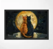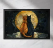 gatti luna notte compagnia silhouette cielo stelle pelliccia code seduto animali amicizia gatto arancione gatto nero struttura riflesso luna luminosa vista posteriore insieme osservazione delle stelle