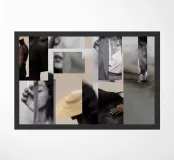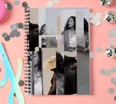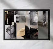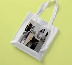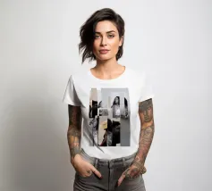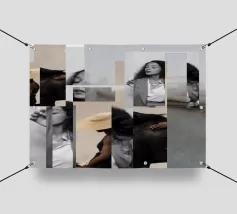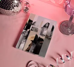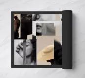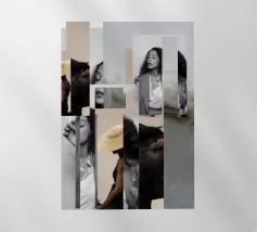 Un collage di tecniche di design analogiche e digitali con un'estetica da rivista patinata.