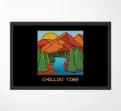 Experience the essence of tranquility with our Chillin Time design, where the sun gently kisses the serene mountain peaks while lush forests embrace the landscape. Noise retro illustration with typography.
