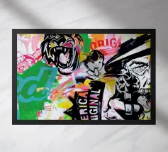 Le opere di Josh Ruggs guardano in modo satirico al sogno americano e a tutti i discorsi sociali, politici e culturali che vi ruotano attorno. Utilizza oggetti familiari di uso quotidiano, celebrità ed estetica comica, chiaramente nella tradizione della Pop Art, come strumenti per visualizzare queste narrazioni della cultura di massa, del consumo e del culto della personalità. Per creare le sue immagini multistrato, l'americano lavora con spray, pittura acrilica, olio, inchiostro e praticamente con ogni superficie che gli capiti sotto mano.