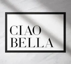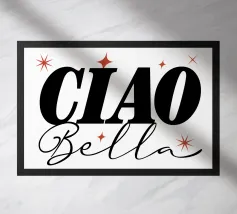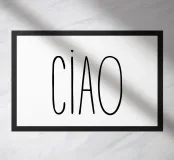 Ciao, ciao in Italia. Tipografia in nero e bianco (trasparente). È possibile cambiare il colore dello sfondo. Poster tipografico minimalista.