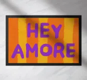 "Hey Amore" - una graziosa tipografia a righe dai colori vivaci che celebra la gioia della famiglia e dell'amore. Perfetta per i matrimoni e come poster romantico.