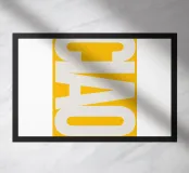 "CIAO" - un saluto come un'attitudine alla vita. Questo poster presenta il saluto italiano come una dichiarazione tipografica verticale su un giallo brillante. Il carattere chiaro e il formato deciso lo rendono un moderno richiamo visivo. Ideale per corridoi, uffici, cucine o come parte della serie "Bold Greetings". Cordiale, chiaro, elegante e positivo al 100%.