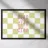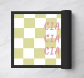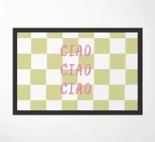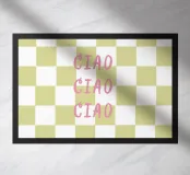 scritta ciao ciao ciao su motivo a quadri color pistacchio.