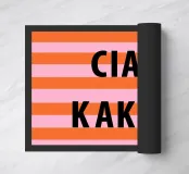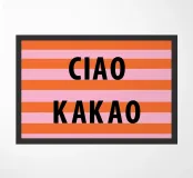 "Ciao Kakao" - una striscia d'addio alla moda in una tipografia elegante che combina il fascino italiano con un'allegra tavolozza di colori rosa e arancione. Ideale per un poster moderno e minimalista!